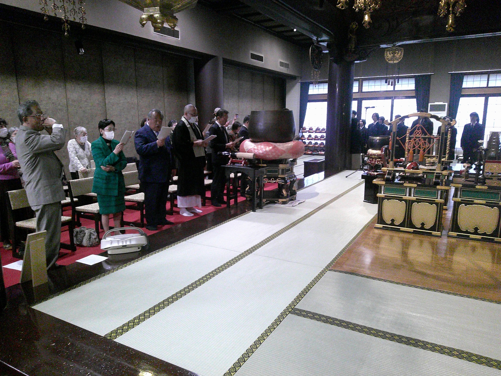 10月21日(土)時雨模様の天候の中、30名の参加者が青森市本町の正覚寺本堂に集まり、午後1時から「平和の鐘を鳴らそう」のプログラムが開始されました。